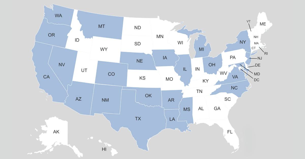 All the organizations of the IAF are politically non-partisan. None will endorse any candidate or party for elected office, nor pursue or accept government funding for any of their organizations. The IAF is the oldest and largest organizing and leadership development network in the United States, and includes 59 organizations throughout the country (in states above highlighted in blue).